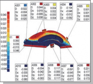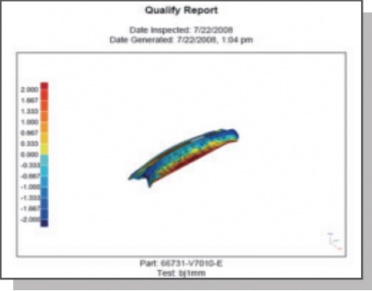 使用3D掃描技術(shù)進行三維檢測是一種全尺寸檢測技術(shù),其基本方法是:先對待檢測部件進行局部或整體3D掃描,把得到的3D點云與其3D數(shù)模進行比對,生產(chǎn)顏色誤差編碼圖和直觀的檢測報告。